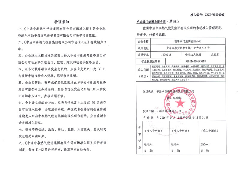 The CPC zhongtai market certificate