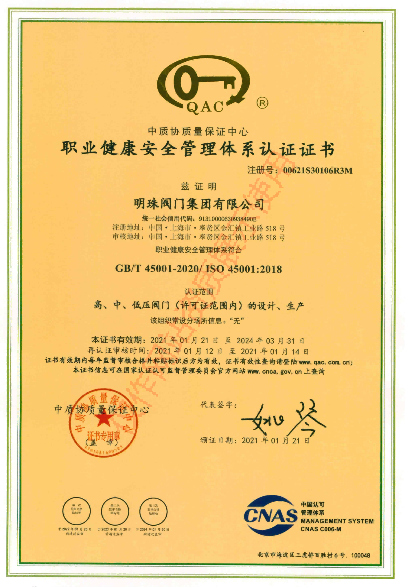 职业健康安全管理体系认证