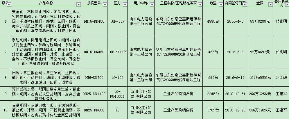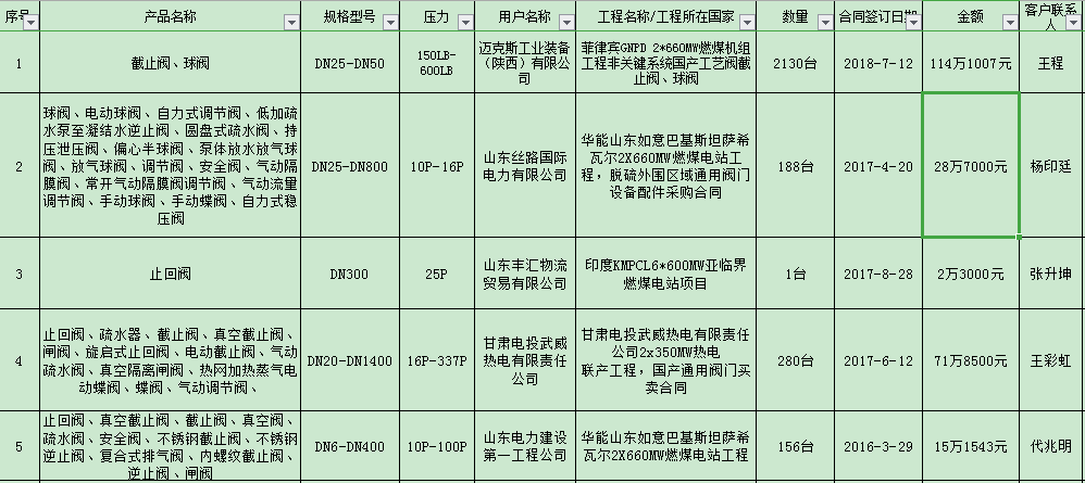 部分出口业绩表 摘录